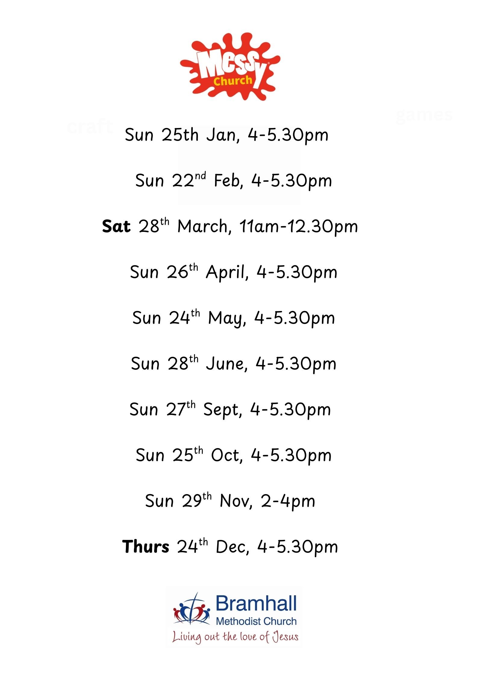 Messy Church is a relaxed, creative way for families to explore faith together. It’s especially designed for children from birth up to primary school age, but older siblings and adults are very welcome too.